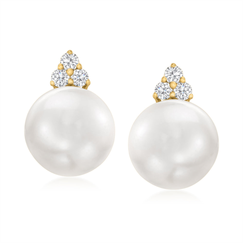 Established in 1952, Ross-Simons brings jewelry classics into the modern era. These classic earrings showcase two 8.5-9mm cultured freshwater pearls topped with .16 ct t.w. diamond trios in 14kt yellow gold settings. Hanging length is 3/8'. Hinged post, diamond and white pearl earrings. Each Ross-Simons item arrives in a fine jewelry presentation box. Shop Ross-Simons jewelry risk-free as all items include a 30-day, 100% money-back guarantee.