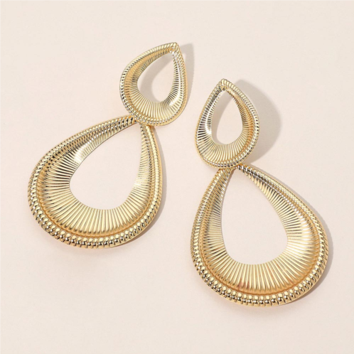 [US] FASHNZFAB bold textured metal double teardrop statement earrings gold