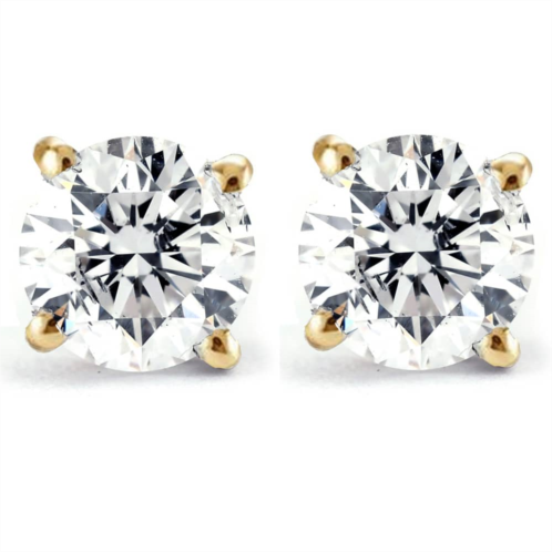 Stunning and high quality women's earrings features round brilliant cut genuine lab grown diamonds. The diamonds are prong set in solid 14k gold with push backs.