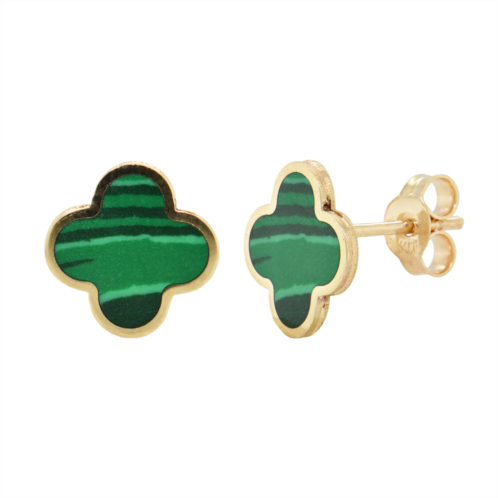 [US] Italian Gold 14k yellow Gold clover stud earrings - malachite