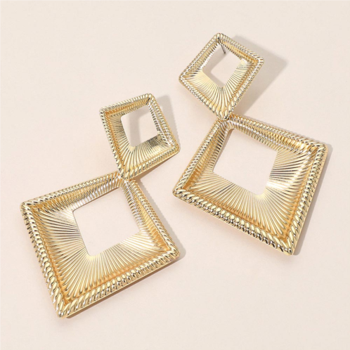 [US] FASHNZFAB bold textured metal geometric open square drop statement earrings gold