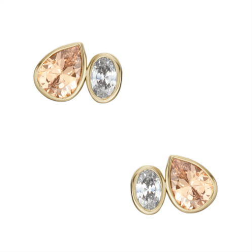 [US] Fossil womens ear party champagne and clear crystal toi et moi stud earrings