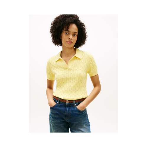 Tommy Hilfiger women's sweater. Made from premium cotton in a flattering, easy fit, our lightweight short-sleeve cable knit polo sweater is a soft, comfortable layer.