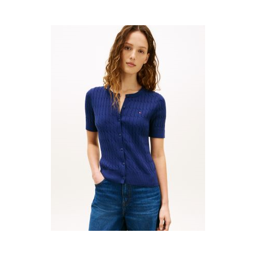 Tommy Hilfiger women's sweater. Made from premium cotton in a flattering, easy fit, our lightweight, short-sleeve cable knit cardigan is a soft, comfortable layer.