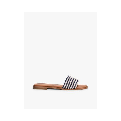 Tommy Hilfiger women's sandal. Complete your warm-weather ensembles with these woven slide sandals, featuring an embroidered monogram script logo and Breton stripes for nautical flair.