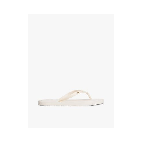 Tommy Hilfiger women's sandal. These flip flops feature a sleek, minimalist design in a monochromatic palette, accented with gold-tone TH monogram hardware for a subtle touch of signature style.