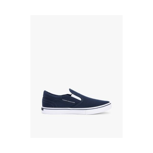 Tommy Hilfiger men's sneaker. Understated and versatile, our canvas slip-on sneakers pair effortlessly with almost anything in your wardrobe. Even better, they feature a heat-treated vulcanized sole for added durability and flexibility.
