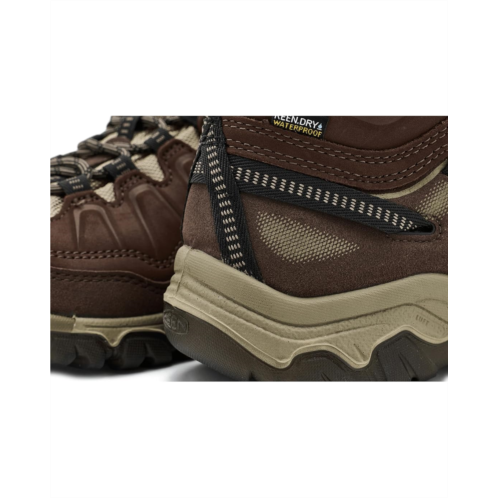 - Conquer every trail, rain or shine! The KEEN Targhee IV Waterproof Hiking Boot is your go-to for rugged adventures, offering out-of-the-box comfort and lasting durability. Crafted with a premium leather upper and direct-attach construction, these boots seamlessly fuse the upper and outsole for long-lasting performance. The KEEN.DRY waterproof membrane keeps feet dry, while the mesh and polyester lining ensure breathability on any trek. A resilient cushioned midsole and all-terrain rubber outsole provide superior traction, stability, and shock absorption. Designed with KEEN's signature wide fit, a secure lace-up closure, and a protective bump toe, these ankle-high boots are built for years of exploration.