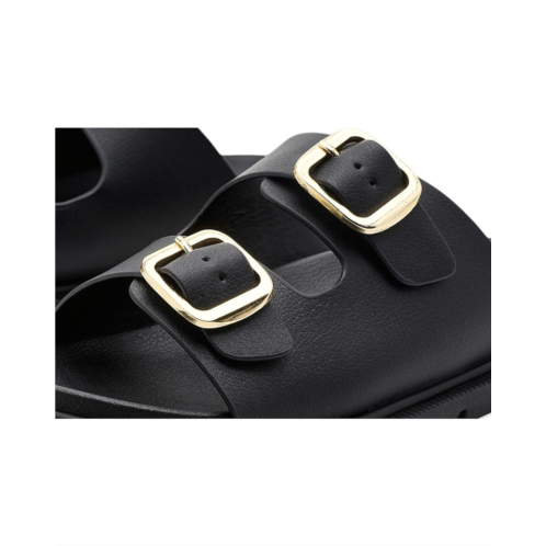 - The MIA Kids Footwear Elodee Too is a trendy double-strap slide designed for everyday wear. Made with a faux leather upper and lining, it features adjustable double buckles for a secure fit and a tumbled polyurethane insole for added comfort. The thermoplastic rubber outsole provides durability and traction.