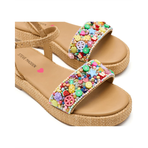 - The Steve Madden Kids Dori sandals bring soft, feminine charm to warm-weather looks with their delicate floral appliques for a charming, dressy touch and braided espadrillekorea sole that provides lightweight height and comfort. These flatform sandals are made of a synthetic rubber upper, a rubber insole, and a synthetic rubber lining. Their adjustable ankle strap ensures a secure, customizable fit. Designed for comfort and style, these heeled sandals are perfect for special occasions or everyday warm-weather fun.