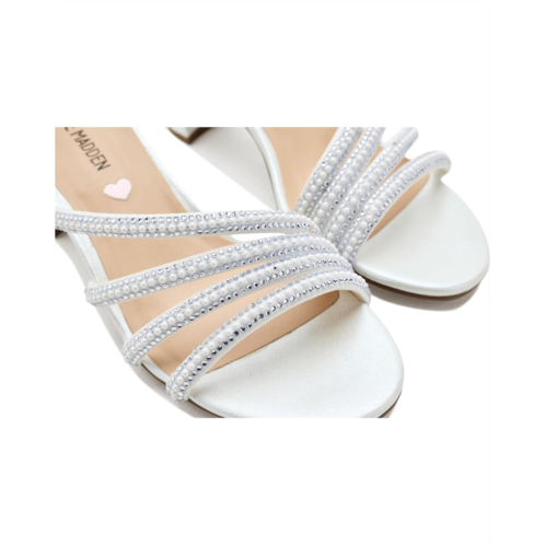 - Let her step into the spotlight with the dazzling Steve Madden Kids Haze sandal. Designed with a sleek synthetic rubber upper and lining, this elegant pair shines bright with rhinestone-embellished straps and a chic metallic finish that instantly elevates any outfit. Whether it's weddings, birthday parties, or magical dress-up moments, the HAZE sandal brings effortless glamor to every step. The low block heel offers just the right lift while ensuring comfort and stability, so she can twirl, pose, and dance with confidence. A rubber insole and durable rubber outsole provide cushioned support and reliable traction for all-day wear. The adjustable buckle ankle strap delivers a secure, customized fit - stylish yet practical.