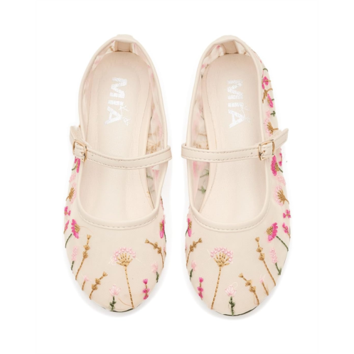 - Mia Kids Kescia: This will be your young girls go to ballet flat for all spring fashion events! The embroidered mesh ballet flats feature faux buckle for adjustability, round toe design, and cushioned insole.