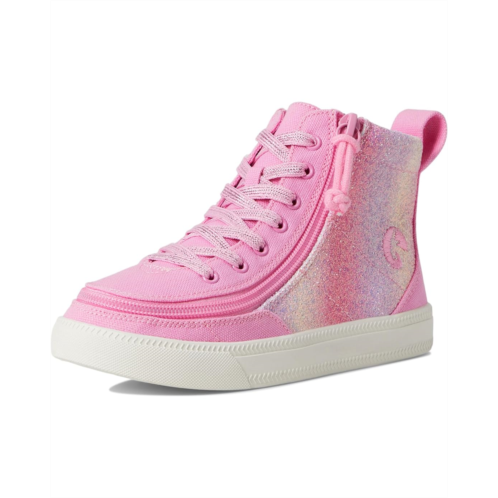 - The BILLY Footwear Kids BILLY Classic Lace High shoes provide optimal fit, comfort, and support! Designed with functional laces for a custom fit, a removable polyurethane insole for added depth, and BILLY's signature zipper system for effortless convenience, these shoes combine standout style with everyday ease. These eye-catching kids' shoes feature an iridescent glitter canvas upper. With cotton lining and a foam midsole, these shoes are as comfortable as they are stylish. Their zippered wrap closure ensures a perfect, customized fit for all-day comfort.