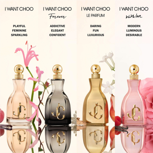 Fragrance Description: I Want Choo With Love celebrates love in all its forms. This fragrance opens with citrus notes of raspberry and orange flower, followed by vibrant notes of rose, hibiscus, and freesia. With a dry down of vanilla and sandalwood, this fragrance exudes elegance, synonymous with Jimmy Choo’s DNA.