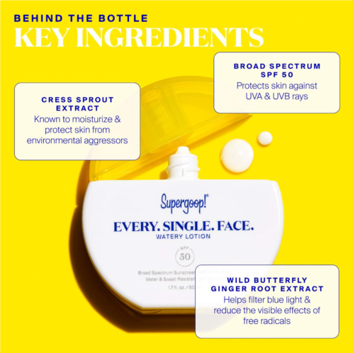 What Else You Need to Know: Every. Single. Face. is universal, easy & effective. This non-comedogenic formula is made with skin-nourishing ingredients & provides expert SPF protection against UVA/UVB & infrared radiation, plus it helps filter blue light & pollution. It's also water- & sweat-resistant for 40 minutes.