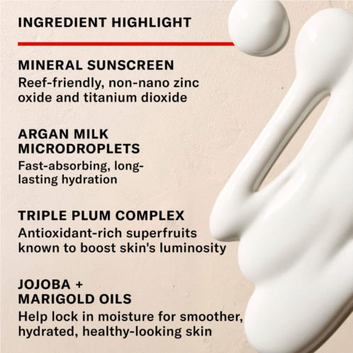 What Else You Need to Know: Experience daily SPF, perfected. Zinc oxide and titanium dioxide provide broad-spectrum SPF 33 protection in this super-sheer, reef-friendly formula enriched with argan-milk microdroplets and nourishing superfruits. It absorbs fast with no white cast or greasy feel and is clinically shown to hydrate skin for up to eight hours.