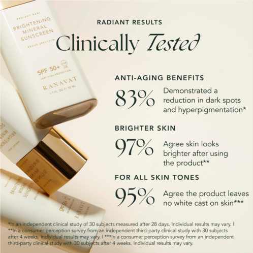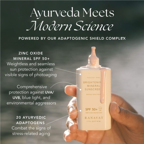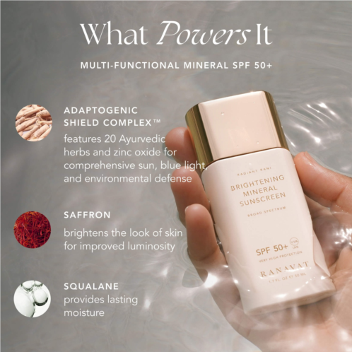 What Else You Need to Know: Featuring RANAVAT's hero ingredient, saffron, this SPF 50+ 100 percent mineral sunscreen is formulated to both prevent and repair visible signs of aging. Lightweight and fast absorbing, this visibly brightening fluid leaves zero white cast, making it inclusive and easy for all skin tones and types to use daily.