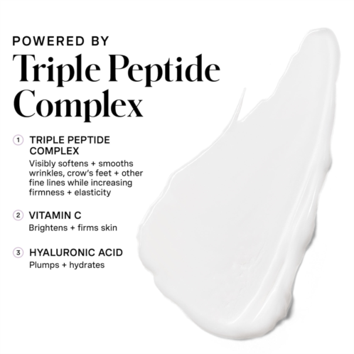 - Triple-Peptide Complex: Relaxes the look of lines, wrinkles, and crow’s feet and visibly increases firmness and elasticity.