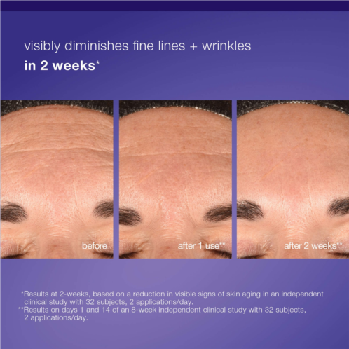 Based on a reduction in visible signs of skin aging in an independent clinical study with 32 subjects, 2 applications/day:
