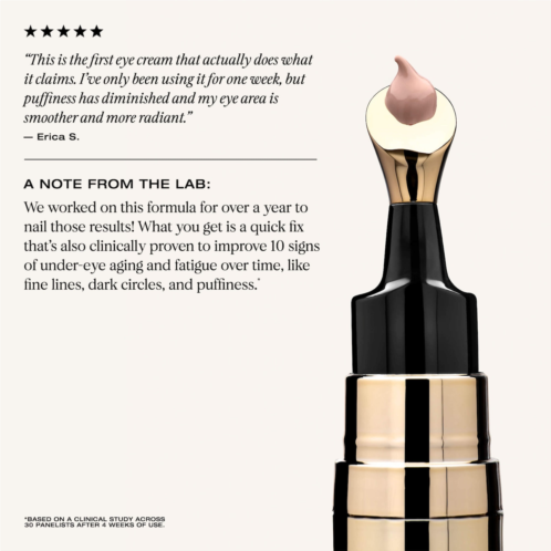 What it is:A morning eye cream clinically shown to reduce the look of dark circles, fine lines, and puffiness; visibly brightening and blurring with a sheer, glowy tint.