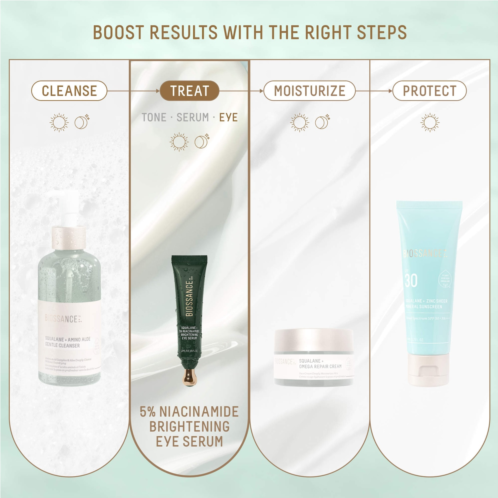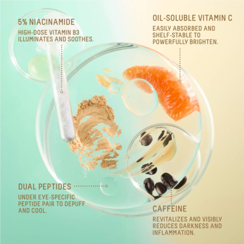 - 5% Niacinamide: High-dose vitamin B3 brightens and reduces the look of dark circles.