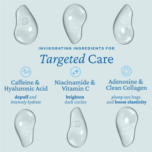 - Caffeine and Hyaluronic Acid: Depuffs and delivers intense hydration.