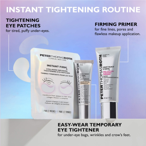 - Collagen, Collagen Amino Acids, Peptides, and Seaweed Extract: Quickly tighten the look of fine lines, under-eye bags, and crow's feet.