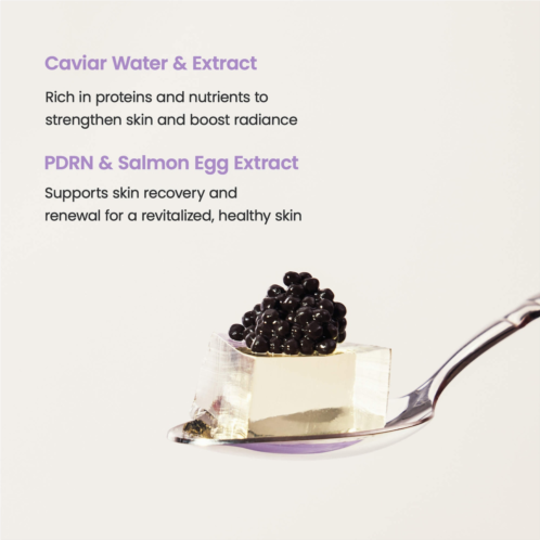 Highlighted Ingredients:- 600,000 PPM Caviar Complex: Rich in proteins and nutrients to strengthen skin and boost visible radiance.- PDRN and Salmon Egg Extract: Supports skin recovery and renewal for a revitalized, healthy-looking glow.