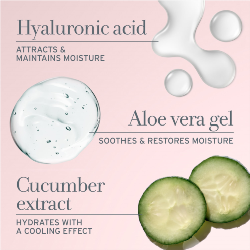 - Cucumber Extract and Aloe Vera Gel: Help soothe the skin and have an immediate cooling and calming effect.