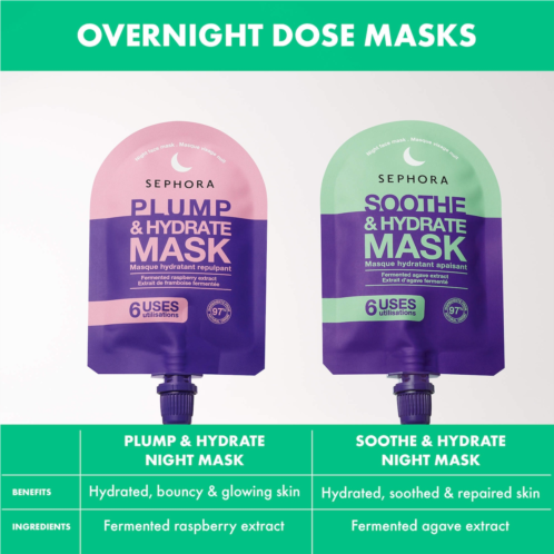 What Else You Need to Know: Enjoy the benefit of concentrated fermented extracts in moisturizing masks. These enveloping gel-cream masks provide the skin with concentrated benefits all night long.Their ultra-cocooning texture ensures long-lasting hydration to comfort the skin. Each mask offers a boost of hydration in addition to a specific benefitwhen you wake up in the morning, your skin is soothed or visibly plumped.