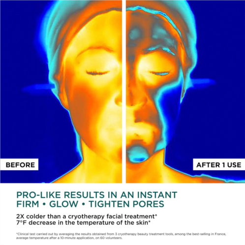 *Clinical test carried out by averaging the results obtained from three cryotherapy beauty treatment tools, among the bestselling in France, after a 10-minute application on 60 volunteers.