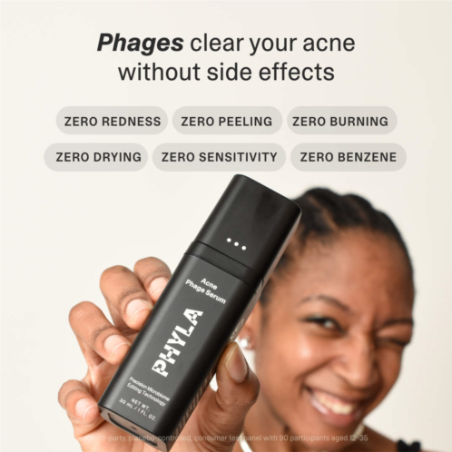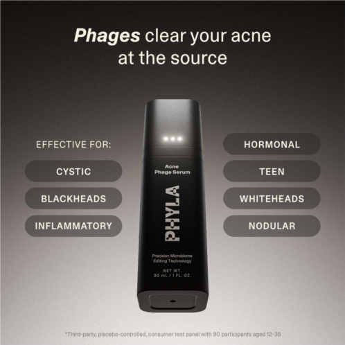 Clinical Results: In an independent, third-party, placebo-controlled, double-blind consumer testing panel involving 90 participants aged 12 to 35 using Acne Phage Serum: