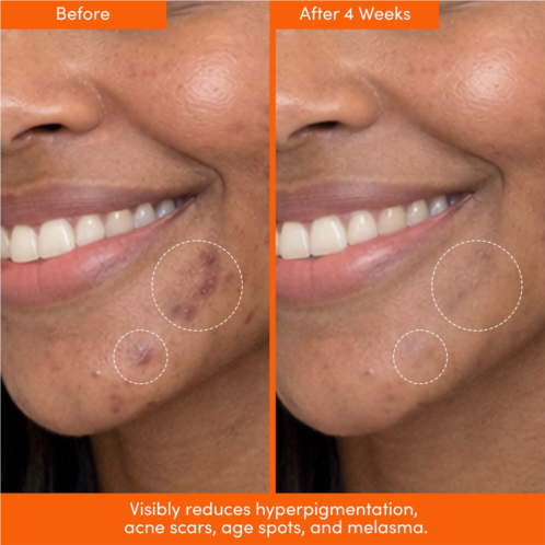 What Else You Need to Know: Visibly reduce the look of hyperpigmentation, dark spots, scars, and post-acne marks in two weeks. This product was developed with Harvard dermatologists and clinically tested on all skin tones and types; emphasis on Fitzpatrick 2-6 (light to dark skin tones). A blend of AHAs and antioxidants work to visibly fade spots and repair skin.