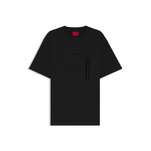 With its decorative reflective details and vertical zip, this relaxed-fit HUGO Menswear T-shirt is a fresh way to do casuals. Stretch-cotton.