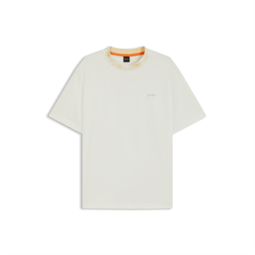 [US] BOSS cotton-jersey t-shirt with patterned collar