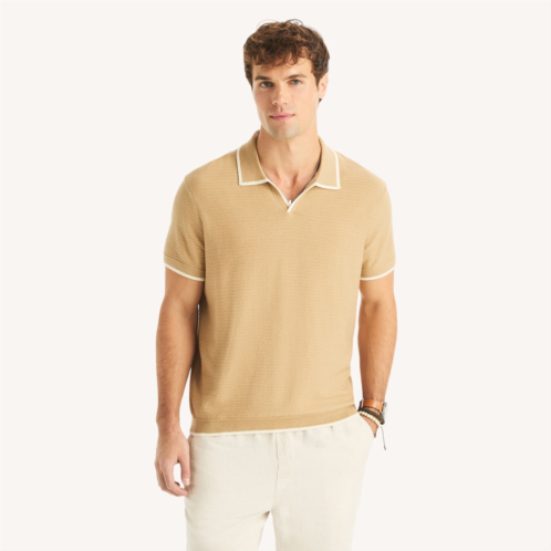 Made from soft cotton knit, this textured sweater polo features a tipped split neck, ribbed trim, and our brand icon at the hem.