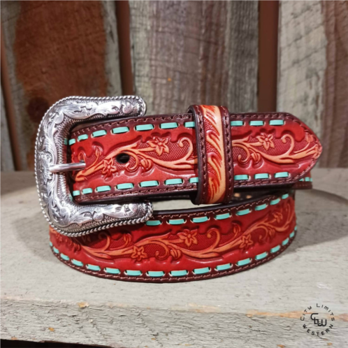 Accentuate your wardrobe with this stylish women's belt, expertly designed to offer a perfect balance of fashion and function. Besides, you can never have too many belts, right? Elevate your ensemble with the Women's Tooled Leather Belt by ARIAT, elegantly crafted to add a touch of sophistication to your wardrobe. This red belt is meticulously designed to make a bold yet refined statement. Ideal for any occasion, it blends seamlessly with various outfits. Make this meticulously crafted accessory the focal point of your look.