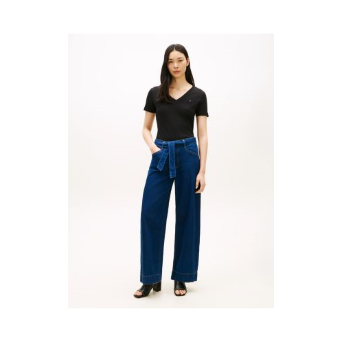 Tommy Hilfiger women's jean. Our wide leg jeans have all the vintage-inspired trappings on your list: a flattering high-rise waist, a self-tie denim belt and slanted side pockets. Thanks to the cotton-modal blend, this pair offers a soft, smooth feel.