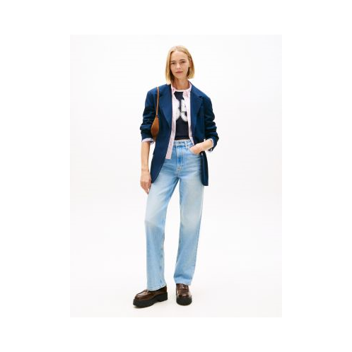 Tommy Hilfiger women's jean. These jeans are designed with a flattering high-rise waist and a slim, straight leg. This versatile pair is made from a stretch-cotton blend for excellent shape retention and comfort. Part of our Tommy Jeans collection.