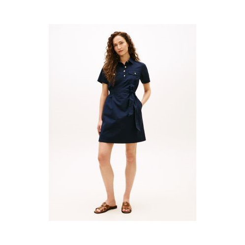 Tommy Hilfiger women's dress. Work-week dressing just got easier. Our utility-inspired shirtdress features chest pockets and a belted waist. Made from lightweight stretch cotton-poplin, this piece has a fresh, crisp feel.