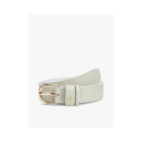 - Round buckle, double keeper with metal TH monogram.
