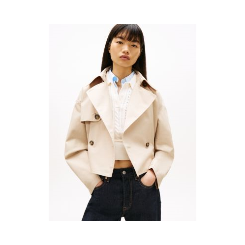Tommy Hilfiger women's jacket. Our water-repellent trench coat is designed in a short, boxy fit with a belted waist and classic notched lapels. Part of our Tommy Jeans collection.