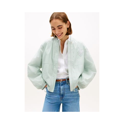 Tommy Hilfiger women's jacket. Our oversized bomber jacket features roomy balloon sleeves and a drawcord hem. Made from lightweight crinkle nylon with a water-repellent finish, it is the ideal outerwear layer for transitional weather.