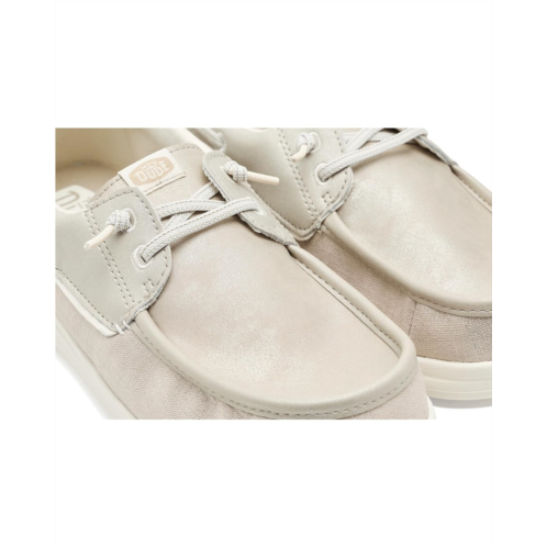 - The Hey Dude Kids Wells Classic Shoes combine clean, timeless style with lightweight comfort for everyday wear. Designed with an easy-to-wear silhouette, this style features a flexible polyester upper that supports natural movement and an elasticized lace-up design for a secure, adjustable fit. A cushioned ethylene vinyl acetate footbed provides comfortable underfoot support, while the lightweight outsole helps keep steps easy and flexible throughout the day. Flex & Fold technology supports healthy feet with its unique shape, giving complete freedom of movement.