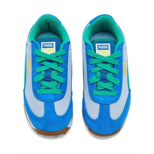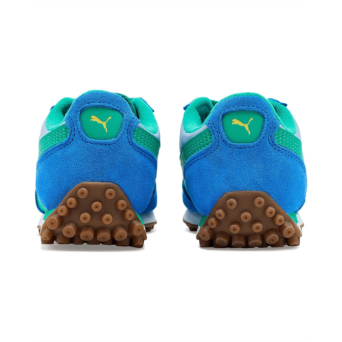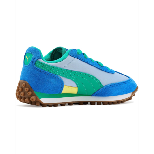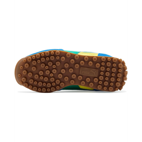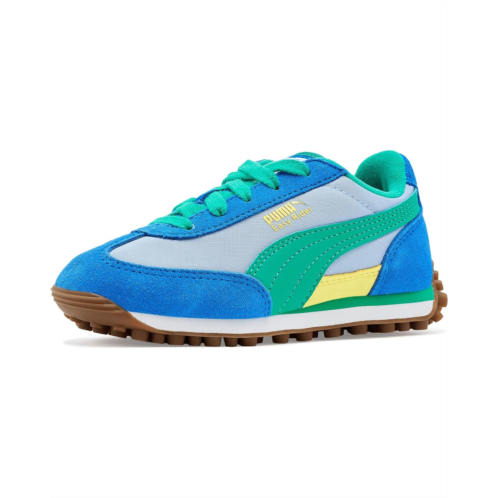 - With its classic slim profile and vintage vibes intact, the PUMA Kids Easy Rider Sneakers boasts a truly timeless silhouette. The low-top sneakers feature a mixed textile upper with synthetic leather overlay, Suede overlay on toe and vamp, leather lining, and :ethylene vinyl acetate insole. While the suede heel comes with synthetic leather underlay, the debossed and printed puma branding, synthetic leather formstrip, and foil printed puma branding on quarter give the look an authenticity. The lace-up closure on the sneakers is designed for easy adjustability.