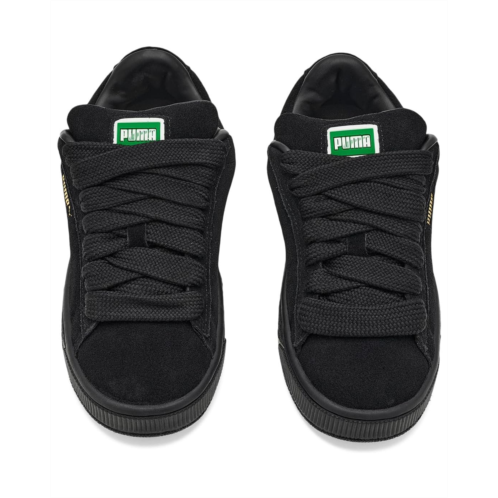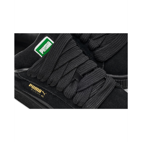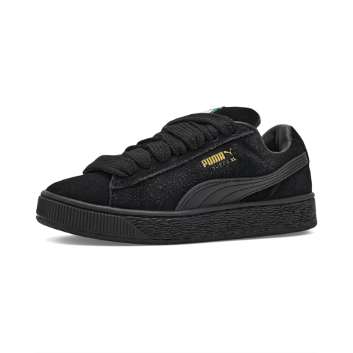 - This PUMA Kids Suede XL Shoes are a fresh take on the classic suede and draws inspiration from PUMA's heritage within breakdancing and its influence on modern streetwear. The Suede XL retains the Suede's iconic DNA, but gives it a twist with an exaggerated padded collar and tongue, plus a chunkier sole. The low-top sneakers feature a sude upper with polyurethane coated leather formstripe, synthetic lining, and a comfort sockliner insole. The debossed and gold foil-printed PUMA XL branding on quarter elevates the look and offers authenticity. The round toe sneakers come with a lace-up closure for easy adjustability.