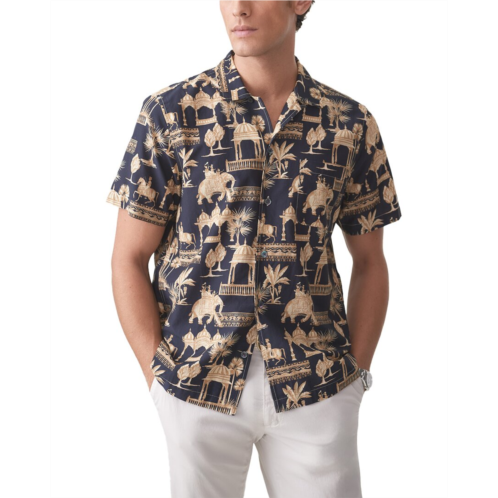 Introducing the J.McLaughlin Irons Woven Shirt, a classic addition to any man's wardrobe. This timeless piece is part of J.McLaughlin's collection of traditional sportswear with stand-out fabrics and prints. Made from 100% linen, this shirt features a button front and is approximately 29 inches from shoulder to hem. Easy to care for, simply hand wash cold and lay flat to dry. Made in the USA, this J.McLaughlin Irons Woven Shirt in Dark Navy is perfect for casual occasions and will be a versatile staple in your closet.