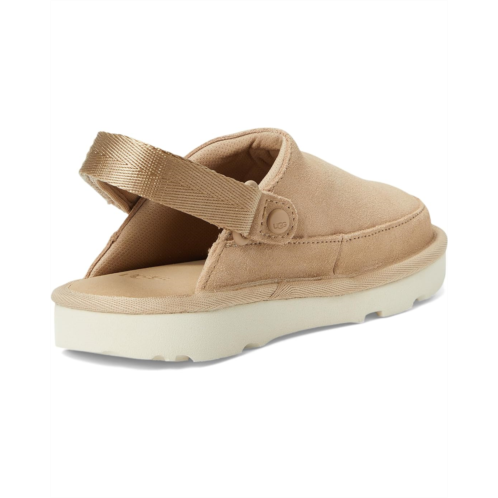 - Clogs might be the shoe of the moment, but this one has the comfort your kids love from the UGG Kids Toddler Goldenstar Clogs with a suede upper and a foam footbed. These clogs come with an adjustable heel strap and hook-and-loop closure so the fit is just right for all-day play. The 100% recycled polyester lining keeps your kid's feet cool and comfortable. These clogs feature a TPU strap end with a graphic UGG font for added style. Make sure your kid experiences all-day comfort and support wearing these slide clogs.