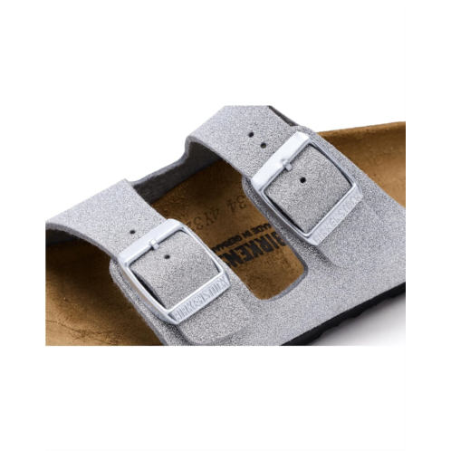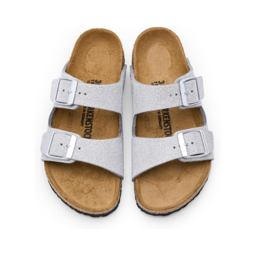 - Let your little one steal the spotlight in the Birkenstock Kids Arizona, Shiny Glitter, a playful icon made for nonstop movement and standout shine. Designed to pair perfectly with your child's sparkling personality, this sandal features a glittery, coated Birko-Flor synthetic faux leather upper that brings instant wow to every outfit. Two adjustable straps with metal pin buckles ensure a secure, customizable fit that grows with them. Underfoot, the suede-lined cork footbed delivers trusted Birkenstock comfort, offering excellent arch support, a deep heel cup, and a roomy toe box that promotes healthy foot development. Over time, the footbed gently molds to your child's unique foot shape for all-day ease. Finished with a lightweight, flexible Ethylene Vinyl Acetate outsole and an easy pull-on design, this sandal is perfect for playdates, parties, and everyday adventures