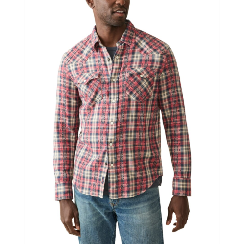 Introducing the Faherty Artisan Twill Western Shirt in Redfern Valley Plaid. This stylish and versatile shirt features a snap button closure and is made of 100% organic cotton. With a length of approximately 29.5 inches from shoulder to hem, this shirt is perfect for a casual yet polished look. Machine washable and imported, this shirt is a must-have addition to any man's wardrobe.